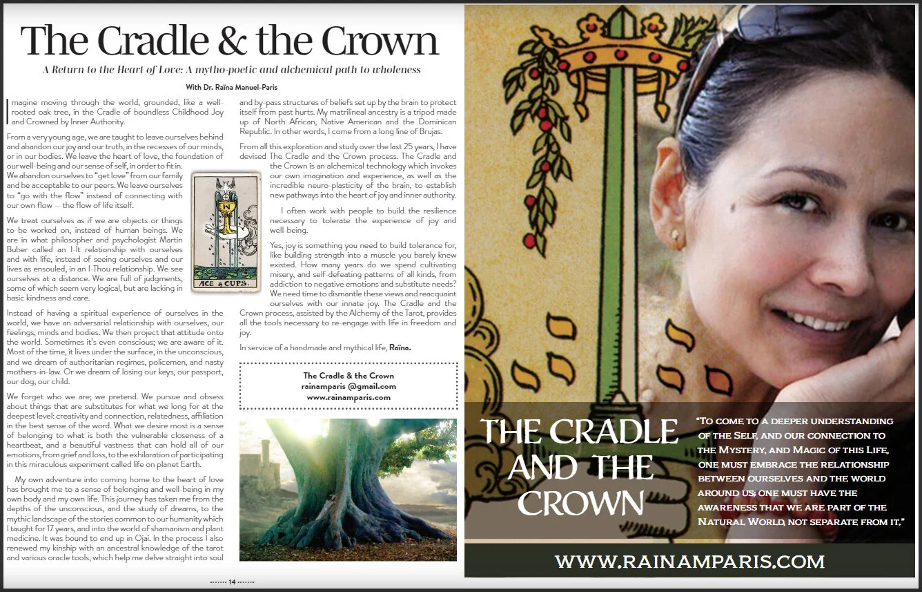 “Soul, I believe, needs Mystery more than Meaning in order to feel the joy of its divinity. The role of Ritual is to put us in relationship with the Mystery and guide us back to our magical nature.” Raïna Manuel-Paris, Ph.D.